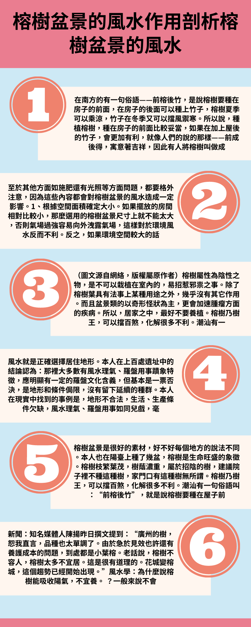 至於其他方面如施肥有光照方面問題,要注意,因為這些內容會榕樹盆景風水造成影響。