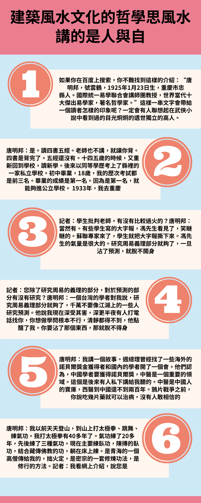 如果你百度上搜索,你找到這樣介紹:“唐明邦,號雲鶴,1925年1月23日生,重慶市忠縣人。國際統一易學聯合會講師團教授,世界當代十大傑出易學家,哲學家。”這樣一串文字會帶一個讀者怎樣印象呢?會有人聯想起武俠說中看到過目光炯炯遺世獨立高人。武俠說是如此,或者,滿足讀者需求,武俠說會高人打上一些異於常人易識別性。